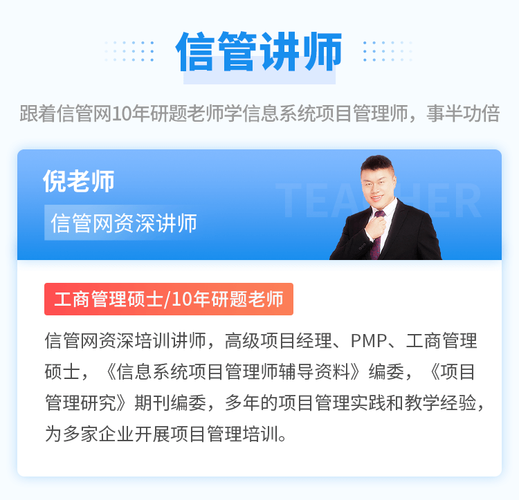 當(dāng)前位置:信管網(wǎng) >> 信息系統(tǒng)項(xiàng)目管理師視頻培訓(xùn)課程 >> 信息系統(tǒng)項(xiàng)目管理師精講視頻班