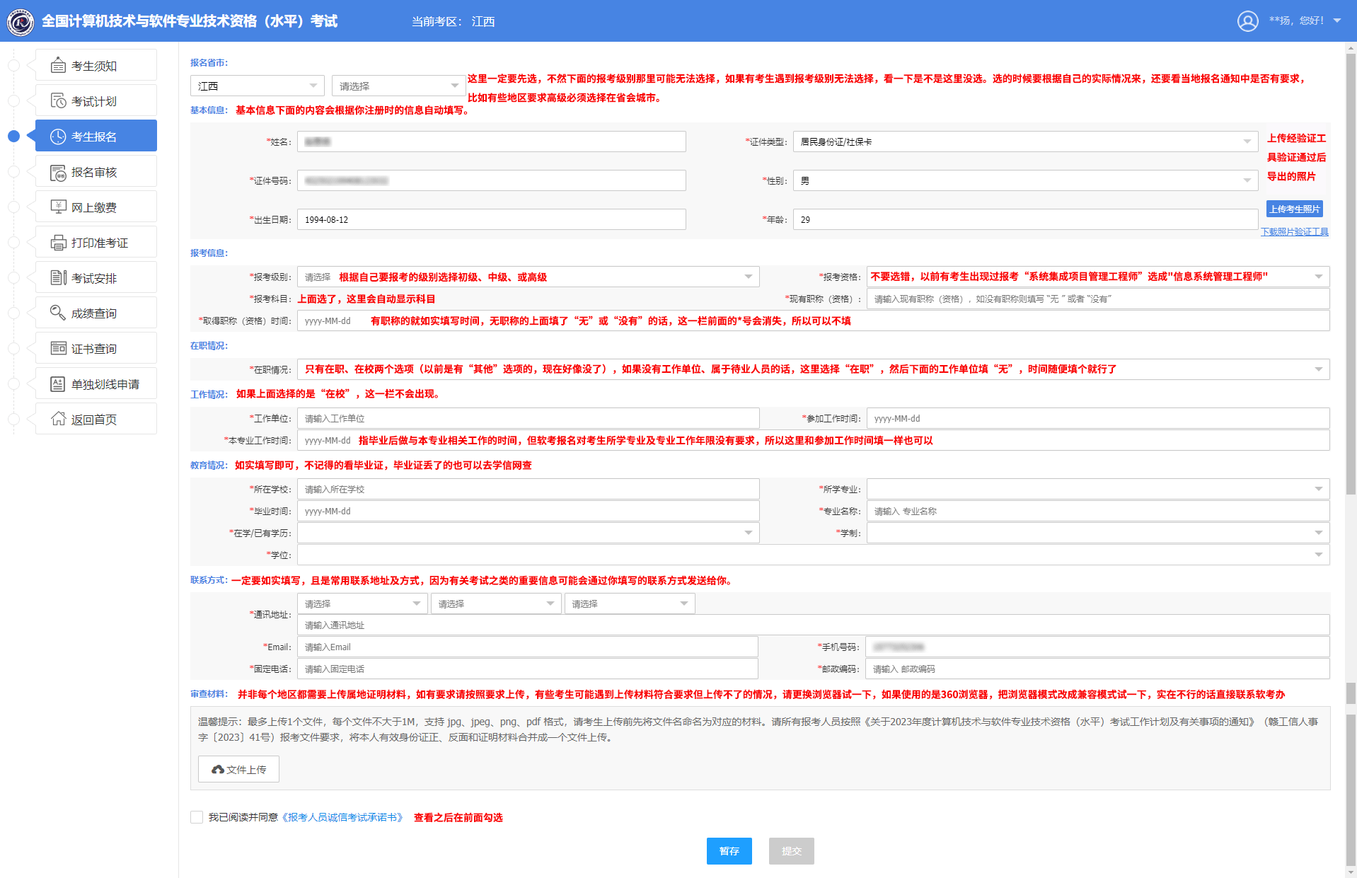⑧填寫報名信息、上傳報名照片、上傳證明材料(并非所有地區(qū)都需要上傳證明材料)【點擊查看報名信息填寫圖文說明】